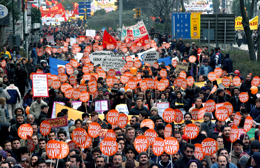 2003년 3월 1일 아침, 십만의 사람들이 터키 의회의 투표를 부결시키기 위한 행진에 참가하려고 앙카라 광장을 메웠다. 여러 조직들이 의회를 겨냥해 행동을 하고 있었다. 수 천명의 사람들이 터키 의회 맞은편에서 손에 초를 들고 지켜보고 있었다. 사람들은 의원들에게 이메일, 문자 메세지, 팩스를 보내고 있었다. 대표자들에게 미국의 요구가 아닌 민중들의 의지에 따라 투표하기를 소리 높여 요구하는 사람들로 도시가 꽉 찼다.