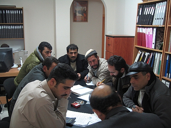 이스라엘은 명백한 점령 국가이고 독재 국가입니다. 국제 경제 분야에서 이스라엘을 고립시키고 팔레스타인과는 연대하는 운동을 만들어야 합니다. 가능하다면 국제 사회가 연대해서 이스라엘을 경제제재 해야 합니다. 반대로 팔레스타인인들이 생산하는 상품을 교류하는 것도 연대의 한 방법이 될 것입니다. 경제적 자립은 정치적 자주성과 직결되는 문제입니다. 팔레스타인 농민연대 사무실에서 농민들이 회의를 하고 있는 모습