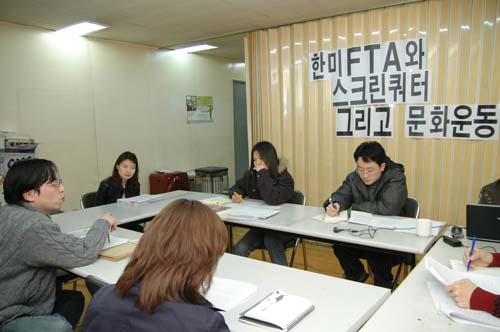 지금 스크린쿼터 투쟁과 FTA 반대운동의 결합을 말하고 있는데, 저는 FTA 반대운동이 반자본주의 운동이고 반자본주의 운동이어야 한다고 생각합니다. 그렇기 때문에 FTA에 반대하는 우리 운동의 대안은 반자본주의적 대안이나 모델을 만드는 것이라고 생각하고, FTA에 반대하는 문화운동 역시 여기에 중심을 두고 고민을 해야 하지 않을까 합니다. 제도나 공적인 기금 같은 부분도 이런 부분에 중심을 두는 한에서 활용이나 접근을 고민하는 것이 필요하다고 생각합니다.