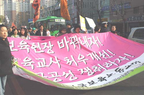 2003년 어느 날 보육관련 워크샵이 끝나고 난 후, 여성가족부 보육담당 공무원에게 보육교사의 열악한 처우를 이야기하던 중 들은 이야기이다. 사실 이 말 한마디면 ‘보육'이라는 노동이 어떻게 평가받고 있는지, 또한 현재 보육노동자의 지위는 어떠한지에 대해 충분히 설명될 것이다. 여성가족부에서 나오는 보육 현황과 문제점에 늘 빠지지 않고 거론되는 것이 ’보육교사의 처우개선‘이지만, 이 말은 마치 들러리처럼 한 켠에 있을 뿐, 실내용은 초라하기 그지없다. 뿐만 아니라 2월 16일 보육의 중장기정책방안을 발표하는 공청회에서 제출된 여성가족부의 <새싹플랜-중장기 보육계획(2006~2010)>(이하 ’플랜‘)을 보면, 오히려 비정규직을 양산하고, 보육노동자의 노동기본권을 박탈하는 내용들이 많아 심각한 문제의식을 느끼게 한다. 이 글에서는 보육정책 중 보육노동자와 관련이 깊은 부분을 중심으로 문제점을 적고, 현재 보육노조에서 논의되는 투쟁방향에 대하여 소개한다.