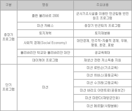 <표1> 차베스의 사회 복지 프로그램15)