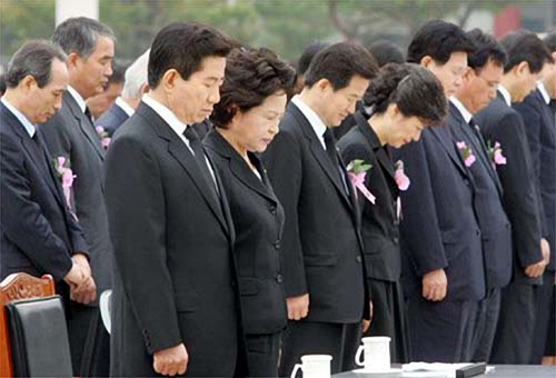 "우리의 생각과 행동이 아직도 반독재 투쟁에 머물러 있어서는 안된다.... 남은 과제는 대화와 타협의 민주주의 가치를 생활속에 뿌리내리는 것이다." (노무현 대통령의 5.18 광주민주항쟁 26주년 기념식 연설 중) 사진=연합뉴스