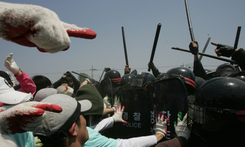 두 손가락이 만나, 진압봉을 내리고 함께 손 맞잡고 대추리로 들어 갈 수 있었다면 좋았을 텐데.