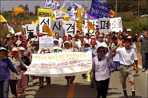 폭격에 항의하는 주민과 사회단체 회원들은 사격장 안으로 들어가려 했지만 어김없이 한국경찰이 이들을 막아섰다. 앞장섰던 문정현 신부(소파개정국민행동 상임대표)가 경찰에게 떠밀려 주저앉았고 이를 말리던 학생들에게는 방패세례가 쏟아졌다.