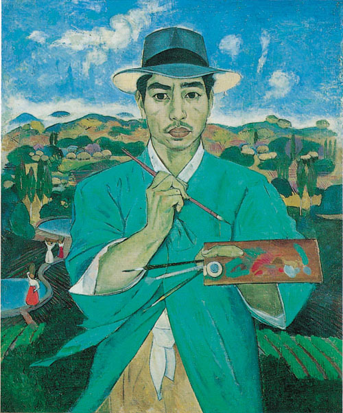 전통복식의 두루마기를 입고 서양의 중절모를 쓴 화가가 관객을 정면으로 응시한다. 화가의 손이라고 하기에 너무나 투박한 그의 손에는 동양화의 모필과 함께 서양화 도구인 팔레트가 들려있다. 그림이 그려진 시기는 해방공간의 조선. 그림에서 느껴지는 석연치 않은 불편한 느낌은 단지 언발란스한 화가의 소품 때문만은 아니다. 속을 알 수 없는 화가의 표정, 슬픈 듯, 결연한 듯, 그러면서도 당당해 보이는 복잡한 표정 뒤로 비현실적으로 아름다운 세계가 보인다. 화가가 꿈꾸던 세상이었을까?