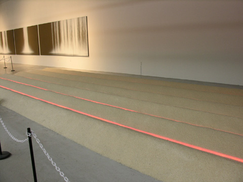 처음 이 작품을 봤을 때는 아니 뭐 이런 걸 작품이라고 하면서 대략난감했다. 설치된 자태도 맘에 안 들었을 뿐 아니라 그 의도가 너무 뻔해보였기 때문이다. 쌀로 만든 설치미술이란, 그것도 여기 아시아의 중심을 외치는 광주비엔날레에서 쌀이 주식인 우리에게 예술작품이라기보다 좀더 즉물적으로 반응할 수밖에 없기에 그랬을 것이다.