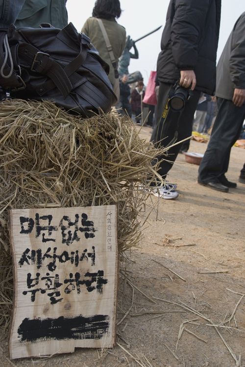이 날 여기 모인 주민들과 지킴이들의 주술행위에는 집터와 고향을 잃은 애절함 이상이 있었다. 지난 3 년 간 한국사회에서 ‘대추리’와 ‘평화’가 사실상 동의어였음을 상기해보면, 당연한 일인지도 모른다. <참세상>의 최은정 기자는 ‘평화’를 묻었다고 했다. 맞는 말이다. 그리고 하나 더 묻었다. 민중미술의 부활을 예고할 것 같은 벽화·조각들도 무너지고 문무인상은 타서 재가 되었으며, 어설펐지만 사랑받았던 노래들이 이제 불릴 곳이 없고 숱한 기록을 남겼던 사진·영상도 찍을 대상이 없어졌으니 ‘예술’도 묻은 셈이다. 삶(대추리)도 묻고, 운동(평화)도 묻고, 영혼(예술)도 묻었으니 모두 다 꾹꾹 묻었다.