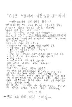 현대중공업노조 개편대책위원회 유인물. 당시 요구가 잘 드러나 있다.