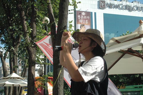이랜드-뉴코아 노동자들의 변화를 인식하고, 또 그 속에서 계속 갈등하는 지점들을 함께 들어보는 것은 이 투쟁이 진정한 승리로 나아가기 위해 우리가 좀 더 끈질기게 붙잡고 가야할 지점이 무엇인지를 진지하게 생각해보게 하는 소중한 자리가 될 것이다. 이랜드 일반노조 여성국장으로 투쟁하고 있는 윤송단 동지와의 인터뷰는 우리에게 그 소중한 고민의 발판을 마련해 줄 수 있을 것이다. 8월 20일 오전에 인천에서 회의를 마치고 급히 민주노총에 도착해 쟁위대책위원회 회의에 참가한 후 평촌 NC 백화점 매장 봉쇄투쟁으로 향하는 윤송단 동지와 동행하며 인터뷰를 진행했다. 매일 쉼 없이 진행되는 투쟁 일정 속에서도 짬을 내 기꺼이 인터뷰에 응해주신 윤송단 동지에게 감사드린다.