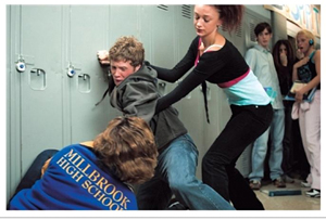 먼저 아들. 그는 착하고 똑똑하지만 학교에서 괴롭힘을 당하고 있다. 항상 당하고만 살던 그에게 강도들을 멋지게 물리친 아버지는 이제 존경의 대상이다. 그리고 그는 이제 아버지의 영웅적 행위에 힘입어 자신을 괴롭히는 아이들과 맞서게 되고, 자신도 모르던 힘을 발휘하여 이들을 무자비하게 구타하기에 이른다. 아버지에서 아들로 폭력이 대물림되는 순간이다. (마치 아버지 부시가 아들 부시에게 이라크 전을 대물림해준 것처럼) 아들의 폭력사용은 또 한 번 나타나는데, 톰이 포가티 일당과 집 앞마당에서 싸울 때 죽음 직전의 상황에서 아들이 포가티의 머리를 엽총으로 난사해버리고 만다. 이렇게 폭력이 대물림 된 덕에 아버지는 목숨을 부지하게 되지만, 둘의 관계는 이제 돌이킬 수 없는 변화를 겪고, 아들은 아버지를 어떻게 받아들일지 몰라 한다.