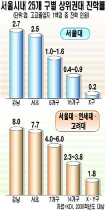 --> 진학률(특히 명문대진학률)의 지역간 격차 --> 교육불평등 심화