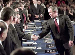 위 내용은 정말 그럴싸하다. 혹자는 빈곤, 질병과 환경파괴로 시달리고 있는 우리의 지구를 구해주기 위한 구세주의 목소리가 아닌가 싶기도 할 것이다. 아니면 미주지역 34개국 정상들이 모여 회의를 하는 동안 철조망에 매달려 시위를 하고 있던 3만여 명의 요구를 들어주려는가, 지난 몇 년간 진행되어온 세계화 반대 시위에 압력을 받은 건가, 이제서야 국가 지도자들이 정신을 차렸나 하는 생각이 들 수도 있을 것이다.