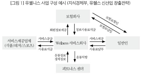 또한 정부가 제시하는 사업 모델인 유웰니스 서비스 회사는 건강관리서비스업법을 통해 제도화하려는 건강관리서비스기관을 의미한다. 이렇게 건강관리서비스업은 유헬스 산업 촉진 전략과 밀접한 관계가 있다. 유헬스 산업은 결국 원격의료에서 원격건강관리로 시장이 확대될 것이라고 예상하기 때문이다. 물론 제도적 장애로 원격건강관리가 먼저 도입될 가능성도 있다.