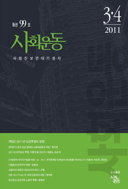 2011.3-4.99호 프린트 사회운동 통권 99호(2011년 3-4월) 표지 정책위원회 | <<사회운동>> 통권 99호(2011년 3-4월) 표지. 주제어 태그 Twitter Facebook Katalk Me2Day