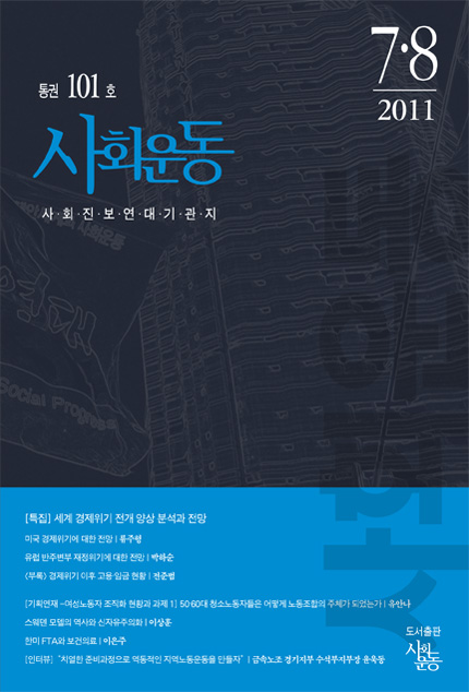 2011.7-8.101호 프린트 사회운동 통권 101호(2011년 7-8월 호) 표지 PSSP관리자 | 사회운동 통권 101호(2011년 7-8월 호) 표지 주제어 태그 Twitter Facebook Katalk Me2Day