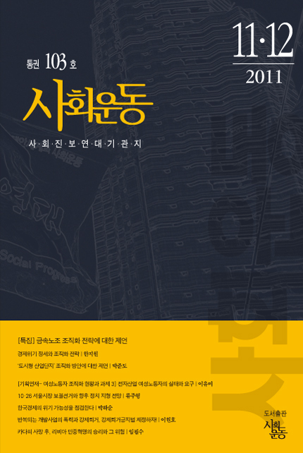 2011.11-12.103호 프린트 <<사회운동>> 통권 103호(2011년 11-12월호) 표지 정책위원회 | 통권 103호, 2011년 11-12월호 표지 주제어 태그 Twitter Facebook Katalk Me2Day