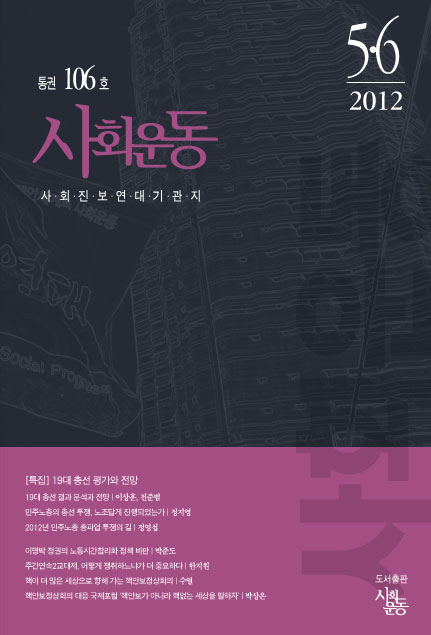 2012.5-6.106호 프린트 <<사회운동>> 통권 106호(2012년 5-6월호) 표지 정책위원회 | <<사회운동>> 통권 106호(2012년 5-6월호) 표지 주제어 태그 Twitter Facebook Katalk Me2Day