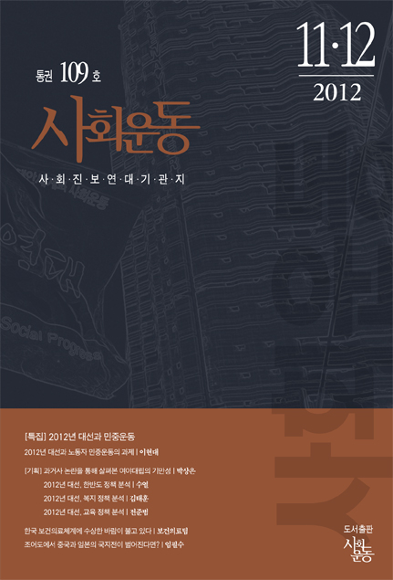 2012.11-12.109호 프린트 2012년 대선과 민중운동 정책위원회 | 2012년 대선과 민중운동 2012년 대선과 노동자 민중운동의 과제 | 이현대 주제어 태그 Twitter Facebook Katalk Me2Day