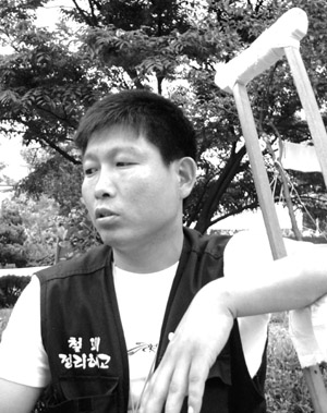 무리인 줄 안다. 하지만 치료받을 형편도 안 되고, 집에서 쉬고 있으면 이 더운 날에 고생하는 동료들을 생각에 마음이 더 불편하다. 그렇다고 다치기 전처럼 활동하지는 못하고, 특히 상경투쟁이 있는 날이면 목발이 아직 익숙치 않아 엄두를 내지 못한다. 그럴 때는 아쉽다. 어쨌든 여건이 되는 한, 최대한 동료들과 함께 할 생각이다.
