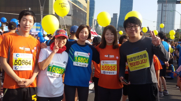 10월 5일 화창한 가을 날씨 속에 열린 마라톤대회에 의료민영화와 송도 영리병원을 반대하는 시민들이 모였다. 보건의료노조, 의료연대, 의료민영화저지범국민운동본부 그리고 인천지역의 노조와 단체 회원들까지 300여 명이 의료민영화를 반대하기 위해 마라톤 대회에 참가했다. 의료민영화 반대 풍선이 형형색색 흩날리며 마라톤대회의 활기를 더하는 가운데 의료민영화 반대 서명전이 열렸다.