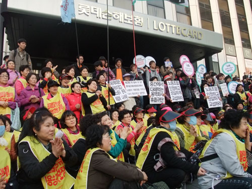 2011년 홍대 청소용역노동자 투쟁이 끝나고 롯데손보 빌딩 조직화 사업을 시작했어요. 하지만 빌딩 시설관리 조직화 사업에서 사측의 탄압은 대학 청소용역에서 경험한 것과는 다른 양상으로 전개되었죠. 사측은 바로 용역깡패를 투입하고 형사소송 및 전방위적 탄압을 걸어 왔어요.