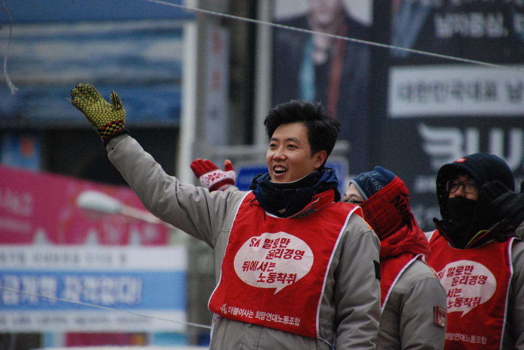그러면 우리도 장기적인 싸움을 할 수 있도록 준비해서, 사측의 기도를 무력화하자는 얘기를 간부들과 하면서, 경고파업과 현장복귀를 했던 거죠. 그리고 투기자본의 매각 앞둔 구조조정 시도에 대해 사회적으로 폭로했어요. 현장 복귀해서 끊임없이 여론 조성을 하고, 그러면서 필요한 시기에 재파업으로 나오는 걸로 기본적으로 생각을 했던 거죠. 해고 대오가 발생했으니 해고 대오는 노숙농성과 같은 물리적 투쟁을 하고.