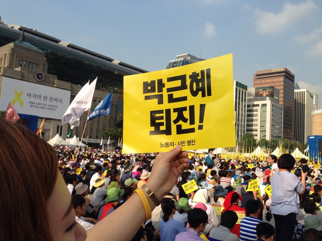 박근혜 정부가 들어선 이래 가장 너른 대중운동이 벌어졌던 시점은 세월호 참사가 벌어진 이후인 2014년 5~8월이다. 당시 집회에는 ‘박근혜가 책임져라!’는 구호와 ‘박근혜는 퇴진하라!’는 구호가 공존했다. 그러나 이 두 구호에는 각각의 곤란이 있었다. 전자는 박근혜가 ‘침몰하는 대한민국’을 책임질 수도 없고 책임지려 하지도 않는다는 사실이 명명백백히 드러났기 때문에 무력했으며, 후자는 분노의 표현일 수 있으나 그 불가능성이나 대안이 없어 보이는 이미지 때문에 시민들의 너른 공감을 사지 못했다.