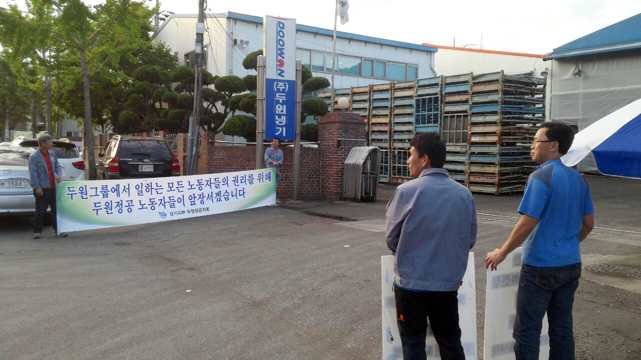 보았다. 그래서 두원그룹의 계열사인 두원냉기 공장 앞에서 선전전을 진행했다.