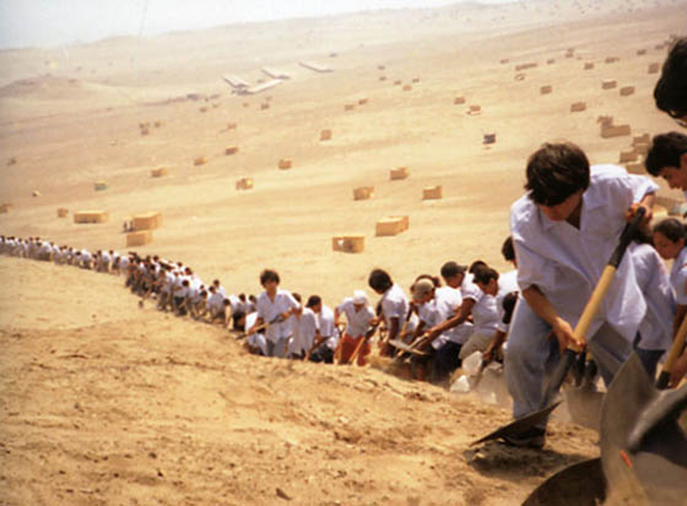 <신념이 산을 옮길 때>는 벨기에 출신 미술작가 프란시스 알리스가 페루 리마의 외곽에 있는 500미터 높이 모래언덕에서 500여 명의 지원자들과 함께 하루 동안 벌인 프로젝트다. 뙤약볕 아래 삽을 들고 줄지어 선 젊은이들은 흙을 조금씩 퍼내며 전진해, 결국 언덕의 위치를 10센티미터 옆으로 이동시키는 데에 성공했다. 이 무모한 '삽질'은, 신념 앞에 불가능은 없다는 오래된 잠언을 예술적 실천으로 옮겨놓는다. 산의 지리적 위치는 실제로 변경되었다. 그러나 여정 뒤에 남겨지는 질문은 다른 곳을 향한다. 삽질을 가능하게 한 것은 과연 신념이었을까. 만약 그렇다면 누구의 신념이었을까? 페루 자본의 힘이 미치지 않는 황폐한 모래언덕 위에서 이루어진 500여 명의 육체노동은 이제 스펙타클한 비디오 기록물의 형태로 제1세계 미술관에 소장되어 있다. 전략과 의지, 동원할 자본과 인력이 있다면 산을 옮기는 것 쯤은 어려운 일이 아닐지 모른다. 누군가의 마음을 진정으로 움직이는 일, '신념'을 공유하는 일은 그보다 훨씬 더 어려운 일이다. 어쩌면 여기서 '신념'이라는 텅 빈 단어에 따옴표를 치고 그 의미를 되묻게 만드는 것이야말로 이 프로젝트가 남긴 성과일지도 모르겠다.