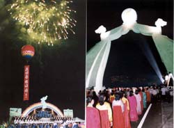 거기서 다시 우리는 <3지연 대기념비 노천박물관>이라는 곳에 내려 구경하였다. 항일전투 때의 군복을 입고 완전무장한 대형 김일성 동상을 조각해놓은 곳이었다. 서울의 4.19 혁명공원의 조각들과는 비교할 수 없이 웅장하였다. 한총련 학생대표는 "이런 것을 세우는 돈으로 굶주린 인민들을 먹일 것이지…."라고 평했다며 남쪽 신문이 보도했다 한다. 3지연이라는 말은 본래 연못이 3개였다는 데에서 연유했다고 하였다. 우리는 잠시 호숫가를 거닐며 한가한 시간을 잠시나마 가졌다. 날씨가 맑으면 이 곳에서 백두산이 잘 보인다고 하였으나 애석하게도 짙은 구름이 끼여 보이지 않았다. 그 곳 주위에는 숙박시설이 숲 속에 많이 있었다. 전국에서 오는 학생들이 이 곳에서 숙박을 한다고 하였다. 이내 주위는 어두웠다. 우리는 삼지연공항으로 와서 야간비행으로 평양으로 다시 돌아왔다.