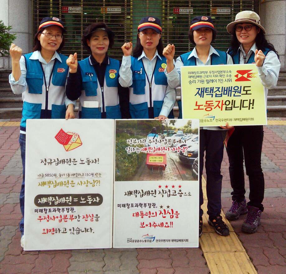 첫 번째 소식은 지난 2월, 법원에서 들려왔다. 법원은 재택집배원이 ‘우정사업본부 소속의 근로자 지위에 있음을 확인한다’는 판결을 내렸다. ‘위탁계약’의 부당함에 맞서 노동자로서의 권리를 되찾고자 2014년 3월 근로자지위 확인 소송을 시작한 지 근 2년 만에 들려온 승전보다.