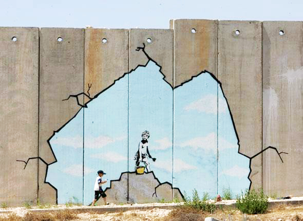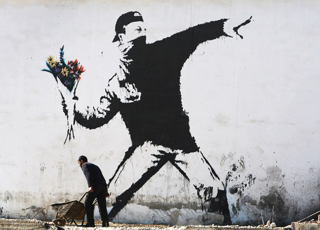 뱅크시는 얼굴이 알려지지 않은 그래피티 작가다. 2000년대 초반, 영국 런던과 브리스톨 거리에 신출귀몰하며 사회 비판적 메시지를 담은 수많은 벽화를 남겼다. 그의 출현은 공공장소에 남긴 낙서를 불법으로 볼 것이냐, 예술로 볼 것이냐 하는 뜨거운 논쟁과 함께 그래피티 열풍을 일으켰다. 2005년 뱅크시는 ‘세상에서 가장 추한 벽을 세상에서 가장 긴 갤러리로 만들겠다’며 이스라엘과 팔레스타인을 가르는 분리장벽에 평화를 염원하는 그림들을 그렸다. 2000년대 후반, 인기와 유명세가 정점에 오르자 운 좋게 뱅크시의 낙서를 선물 받은 런던의 집주인들은 벽을 떼어 판매하기도 했다. 수억 원을 호가하는 가격이었다. 당시 일부 비평가들은 영웅심에 들뜬 기회주의자 예술가라 폄하했지만, 아이러니하게도 뱅크시는 은둔하면 할수록 더 유명해졌다. 모작이 거리에 넘쳐날 즈음에서야 그의 유명세는 주춤해졌다. ●