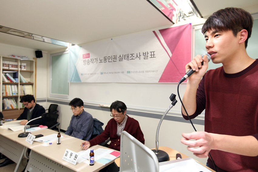 “한국의 방송제작에는 제대로 된 체계가 없어요. 방송제작을 통외주, 공동제작, 자체제작으로 나눈다고 하는데, 여기에 외주제작사나 기획사가 끼고, PD나 작가 같은 수많은 프리랜서들이 들어왔다 나갔다 그래요. 이들 관계를 규정하고 권리를 보장하는 법적 규제도 없고 엉망이죠. 노조에서도 구체적인 시스템이나 비정규직 현황을 파악하지 못하고 있어요.”