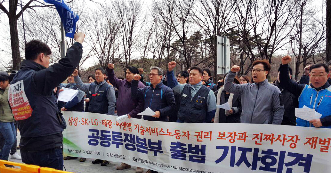 2013년 2월 씨앤앰을 시작으로 3월 티브로드, 7월 삼성전자서비스, 2014년 3월 SK브로드밴드, LG유플러스 하청업체 간접고용 노동자들이 노동조합의 깃발을 세우고 치열하게 투쟁을 전개했다.