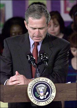 하지만 대통령 부시를 필두로 하는 미국의 정책 결정자들은 '왜' 미국에 대한 증오가 누적되어 왔으며 이런 일이 발생하게 되었는가에 대해 결코 자문하지 않고 있다. (너무나도 당연하다!) 오히려 미국 정부가 보이는 일차적 반응은, 이 사건으로 인해 자신의 헤게모니에 무언가 균열이 발생하고 있다는 인상이 세계적 범위에서 각인될까 전전긍긍하는 것처럼 보인다. 따라서 이번 사건에 대해, 미국의 압도적인 힘을 (과잉되게) 과시함으로써, 무너진 우상을 회복하고자 하는 심리가 집단적으로 작동하고 있다.2)