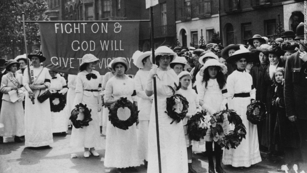 이러한 운동은 1913년 ‘여성에게 투표권을!’이라는 구호를 외치며 경마대회에 뛰어든 에밀리 데이비슨의 사망으로 정점에 이른다. 수많은 여성들이 흰 옷을 입고 그녀를 추모하는 꽃을 들고 런던 중심가에서 열린 데이비슨의 장례식에 참여해 행진했다.
