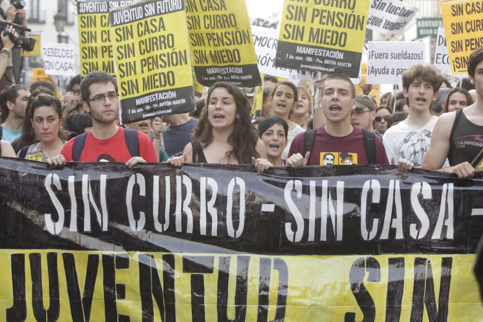그렇다면 실제 광장 시위에 참여한 사람들은 누구인가? 그들은 왜 초기에 정당이나 노동조합과의 협력을 거부하고, 제도화된 정치 이데올로기로부터의 독립성을 강조했는가? 이에 대해 집회 참가자의 주축이 교육을 받았고, 반(半)프롤레타리아화된 서비스부문 중간계급, 즉 전형적으로 말하자면 ‘콜센터에서 일하는 대졸 청년’이라는 보고가 많았다. 이글레시아스에 따르면, 강력한 노동조합이 없는 부문의 청년 노동자가 핵심층이었다. 그들은 장기간에 걸친 부동산버블로 높은 소비 수준에 기반한 정체성을 갖고 성장했지만, 위기로 인해 취약계층으로 전락했다. 그는 공공부문과 산업부문 노동조합이 세계 금융위기 초기에 총파업을 비롯해 긴축 반대 투쟁을 전개했으나, 5·15 운동은 그보다 훨씬 더 나아간 투쟁을 전개했다고 덧붙였다. 5·15 운동의 참가자들은 특히 공화국 깃발과 같은 좌파적 상징에 불편함을 느낄 정도로 총파업 참가자들과는 구성이나 문화가 크게 달랐다는 점도 지적했다.