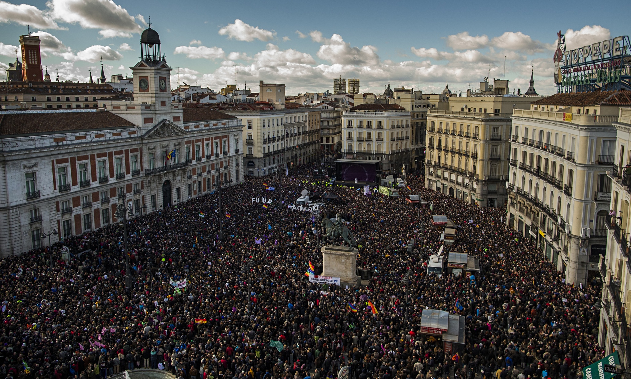 “몇 주 전 우리 TV쇼에서는 아랍의 반역을 토론하면서 경제위기가 다른 지정학적 공간에서는 정치소요와 사회운동을 창출할 것이지만, 스페인에서는 그렇지 않을 것이라는 비관적 결론을 내렸습니다. (…) 5·15 운동은 스페인 좌파의 현실을 보여줬습니다. 전통적인 좌파정당은 그러한 운동의 부상과 전혀 상관이 없었습니다. 좌파정당 지도자는 어떤 일이 벌이지고 있는지 이해하는 데 엄청난 어려움을 겪었습니다. 일부는 오히려 화를 냈죠. 그들은 [시위자들이 ‘분노한 자들’라 불리는 것에 대해] ‘나는 지난 30년간 분노한 자였다. 그때 너흰 어디 있었냐?’는 식이었죠.”