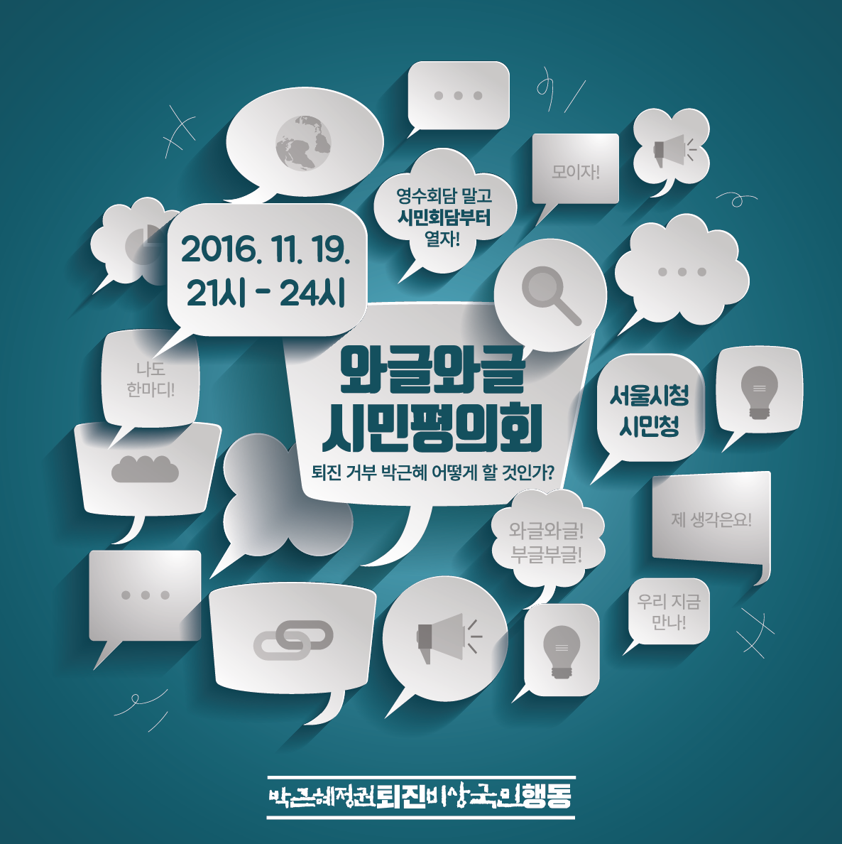 박근혜를 끌어내린다고 세상이 바뀔 리 만무하다는 건 이미 많은 이들이 인식하고 있다. 이에 따라 다양한 의견이 제기되고 있으나, 아직 만족할 만한 대안과 실천이 나온 것은 아니다.