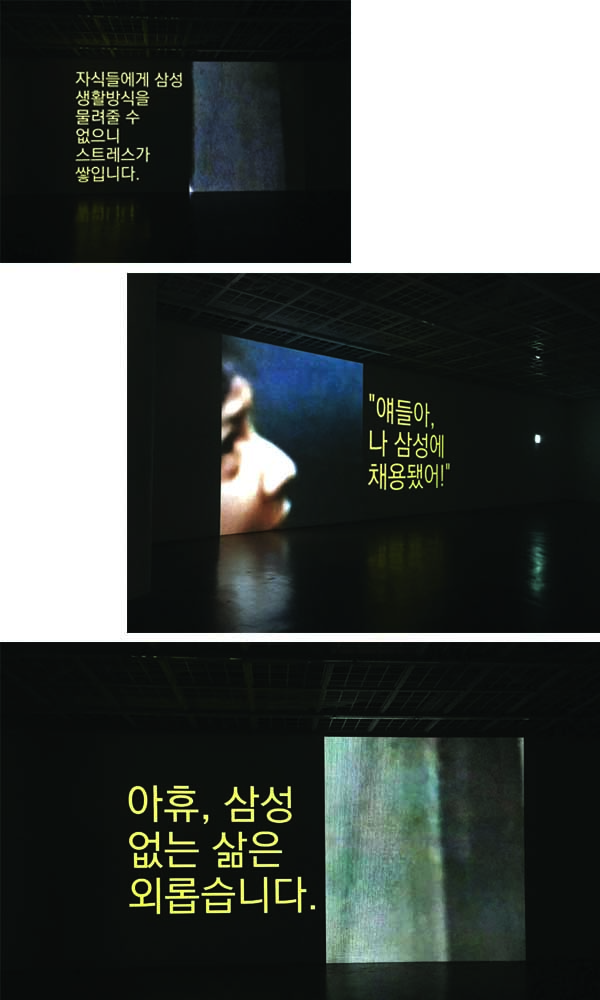 불행히도 현실의 부조리함은 언제나 예술을 능가한다. 삼성이 이끄는 대로 욕망하고 소비하고 착취당하는 현실의 쳇바퀴 속에서, 장영혜중공업이 ‘죽음’이라고까지 표현한 그 공허한 경주를 어떻게 끝낼 수 있을까? 그러고 보니 이 전시의 제목은 <3개의 쉬운 비디오 자습서로 보는 삶>이다. 자습서가 스스로 배워 익히기 위한 도구라면, 우리는 현실을 대면케 하는 이 작품으로부터 무엇을 학습할 것인가? 이미 과포화 상태인 냉소를? 혹은 그것을 거부하고 넘어설 용기를?