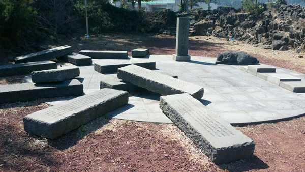 각명비에는 내가 이번에 제주도에 와 처음으로 익힌 지명들 밑에 수많은 희생자들의 이름이 적혀있었다. 기가 막힌다. 내가 이런 땅을 멋도 모르고 밟고 다녔구나. 남원과 위미가 좋다느니, 애월과 세화바다가 예쁘다느니 하면서. 각명비에도 이름이 적히지 못한 사람들도 꽤 많다고 하니 마음이 아팠다. 북촌리에서도 마찬가지였지만 ○○○자, ○○○처 라고 적혀있는 사람들이 종종 눈에 띈다. 저 두 살배기 아이는 그 때까지 이름이 없었을까. 아니면 동네주민들이 누구네 집 자식과 부인은 이름을 몰랐을 수도 있지. 이들의 이름을 증언해줄 사람도 없었던 것이다.