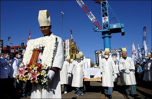 8월 구사대의 폭력으로 세원테크 이현중 사망, 9월 농민 이경해 할복, 10월 한진중공업 김주익·곽재규 자결과 근로복지공단 비정규직 이용석 분신, 11월 세원테크 이해남 분신 … 하반기에는 노동자민중의 죽음이 이어졌다. 이른바 ‘열사정국’이었다. 수많은 주검들이 “노무현 대통령님! 얼마나 많은 노동자들이 죽어야 이 나라의 노동정책이 바뀔 수 있겠습니까?”(세원테크 이해남 지회장의 유서) 라고 절규했다. 그러나 노무현은 “노동자들의 분신이 목적을 달성하기 위한 투쟁수단으로 사용되어서는 안 되며, 자살로 인해 목적이 달성되는 일은 없어야 한다”고 화답했다.