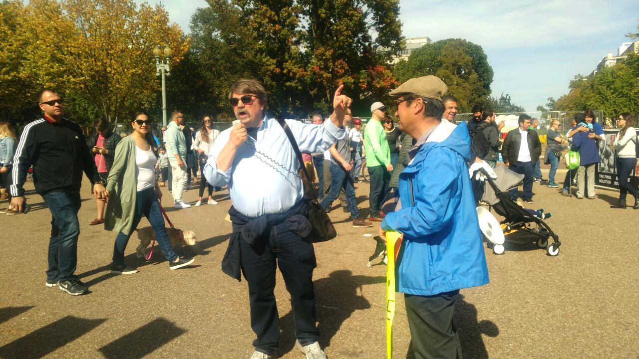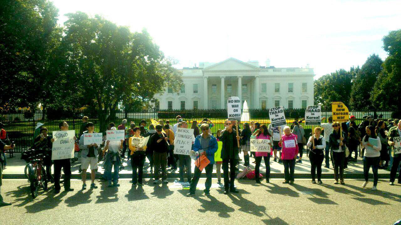 10월 28일(현지시각) 오전, 미국 워싱턴 DC의 백악관 앞에서 인근의 재미교포 및 활동가들이 대북 적대 정책 폐기와 대화 개시로 제2의 한국전쟁을 막을 것을 요구하는 시위를 진행했다. 팀 셔록 씨도 이 자리에 함께하여 발언까지 맡았다.