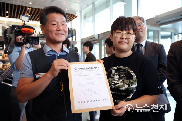 “노조 만들려는 생각은 없었어요. 5만원 뺐기는 게 너무 억울해서 그거 돌려받을 수 있는지만 물어봤었죠. 근데 노무사님이 연장 수당이나 근로 환경에 대해 물어보시더라고요. 대화하면서 불법파견 문제도 알게 됐죠. 본사 (한국노총 산하)노조는 전혀 우릴 도울 생각도 없었으니 따로 만들어야겠다는 생각이 들었죠.”