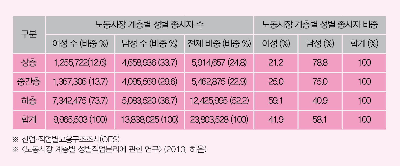 허은, 〈노동시장 계층별 성별직업분리에 관한 연구〉, 2013.