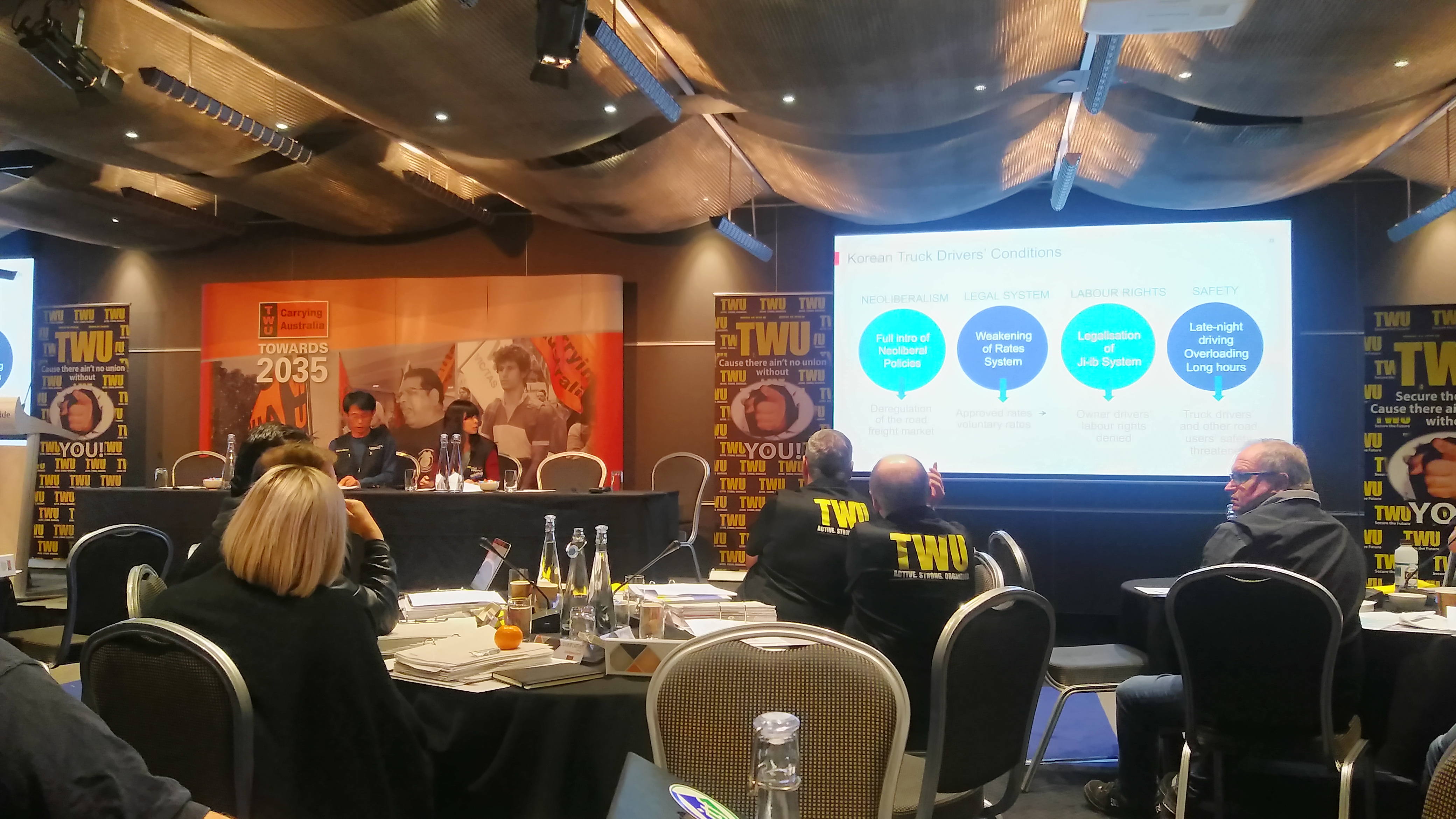 한국에서는 흔히 볼 수 없지만 국제연대관계를 맺는 노동조합들을 주요 의결기구 회의에 초청하는 것이 국제노동운동에서는 일반적인 관행이다. 서로의 조직문화와 중점 사업을 더 깊이 이해하며 연대관계를 확인하고 강화하는 기회로 쓰인다. 그러나 이번 호주운수노조 중앙위원회 참석은 상징적인 수준에서 진행되는 일반적 연대방문을 넘어선 의미와 더 구체적인 목적이 있었다. 한국과 호주 양국 화물노동자들의 투쟁이 교차되는 지점에서의 만남이었기 때문이다.