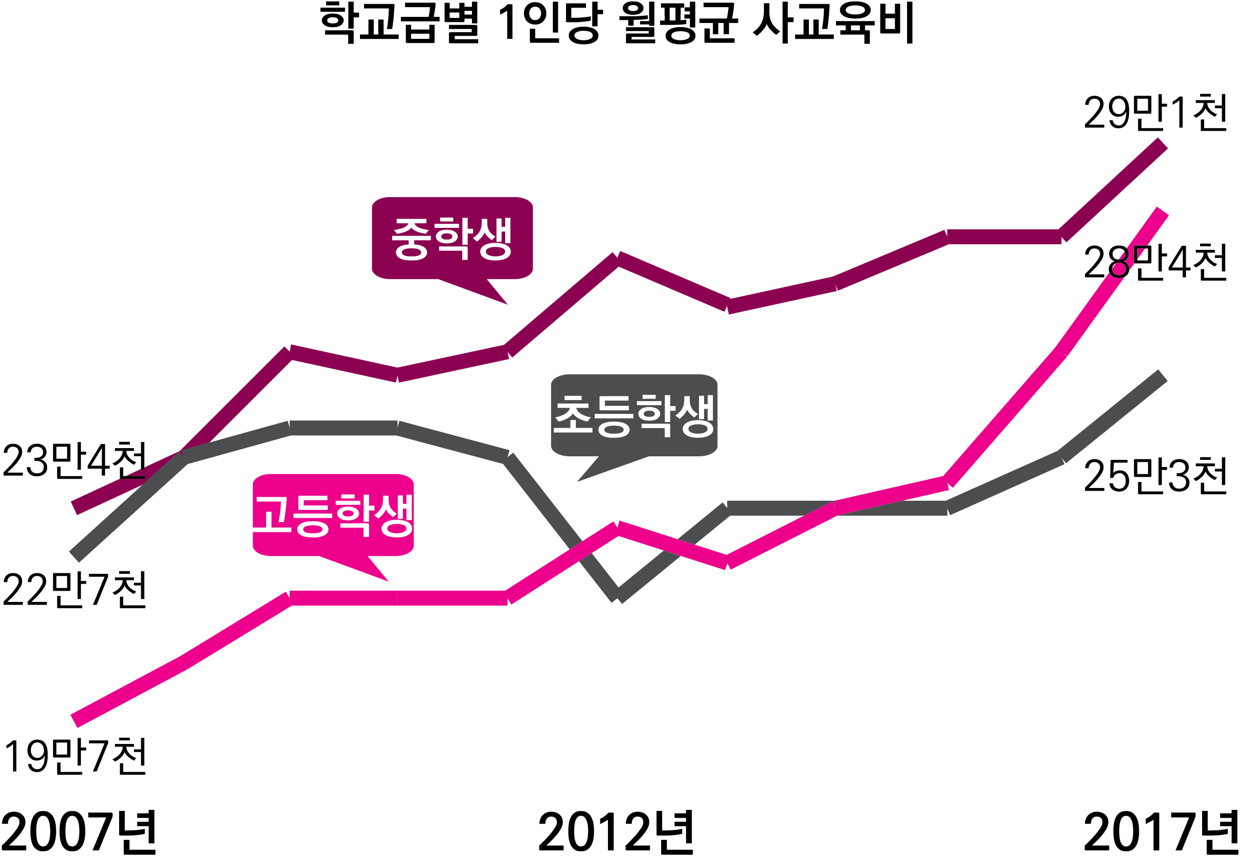 대입제도의 변천은 고교 평준화와 고등교육의 팽창과 맞물려 이루어졌다. 동시에 국가는 학생들의 입시부담을 해결하고, 사교육비를 절감하며, 고교 교육을 정상화하겠다는 목표를 표방해왔다. 그러나 대입제도의 잦은 변화에 비해 학생들의 입시부담이 줄어들거나 사교육비가 절감되지는 않았다. 오히려 대입제도가 자주 바뀌면서 준비하는 학생들의 혼란만 가중됐고, 1인당 월평균 사교육비는 꾸준히 늘어나기만 했다. 특히 고등학교 1인당 월평균 사교육비의 증가가 눈에 두드러진다.