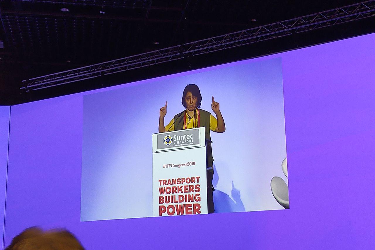 총회 장소를 가득 채우고 있는 화면에는 트럭 운전대를 잡고 있는 여성 운수 노동자의 사진이 걸려 있었다. 리비아 항만 선원노조 위원장인 네르민 알 샤리프 동지의 여성리더십에 대한 열성적인 발언은 여성 노동자들의 폭발적인 지지를 끌어냈다. ‘세계 운수 산업에서 젠더에 따른 직업분할과 여성 운수 노동자에 대한 폭력을 종식하기 위한 노동조합 역량 강화’라는 문제의식은 거창한 보고서가 아니라 몇 가지 사진과 장면으로 설명할 수 있다.