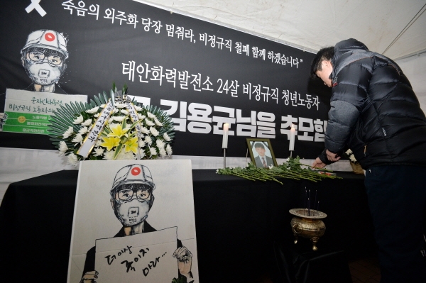 故 김용균의 사망이 지난 사고들과 달랐던 직접적인 이유는 ‘비정규직 100인 대표단’의 대정부 투쟁 과정에서 벌어진 일이었다는 점이다. “문재인 대통령, 비정규직 노동자와 만납시다”라는 피켓을 들고 있는 故 김용균의 사진은 공동투쟁의 일환으로 진행된 운동이었다. 특히 공기업의 비정규직 노동자라는 점에서, 또한 직접 대통령 면담을 요구하는 운동의 참가자였다는 점에서 정부도 책임을 외면하기 쉽지 않았다. 그러나 정부가 압박을 받은 진짜 이유는 2016년 구의역 스크린도어 사망사고 등을 거치며 ‘청년 비정규직’에게 위험을 전가하는 정부와 기업의 행태에 대해 시민들의 문제의식이 커져 왔고, 공공부문 비정규직 남용을 반대하는 여론이 힘을 얻었기 때문일 것이다.