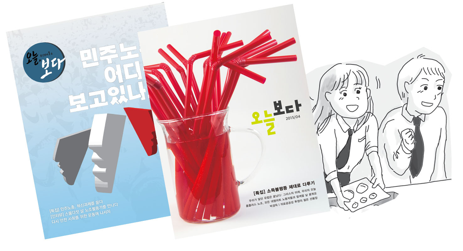 이외에도 새롭게 출발한 잡지인 만큼, 여러 의욕적인 시도들이 돋보였습니다. 《오늘보다》와 사회진보연대로서는 다소 생경했던 진보정당 운동의 방향을 고민하는 인터뷰도 실렸습니다. 새로운 미디어 환경에 발맞춰 새로운 노동자 운동의 교육을 모색했던 <다른 세계를 만드는 힘, 노동자 시민 교육>(2015년 7월호)도 있었습니다.